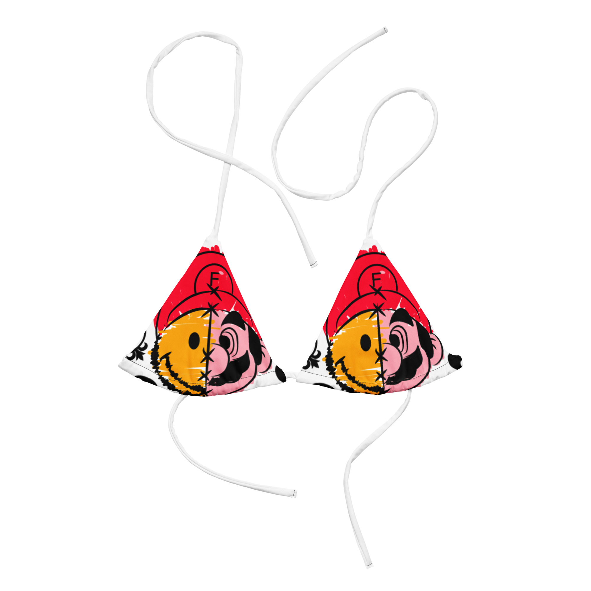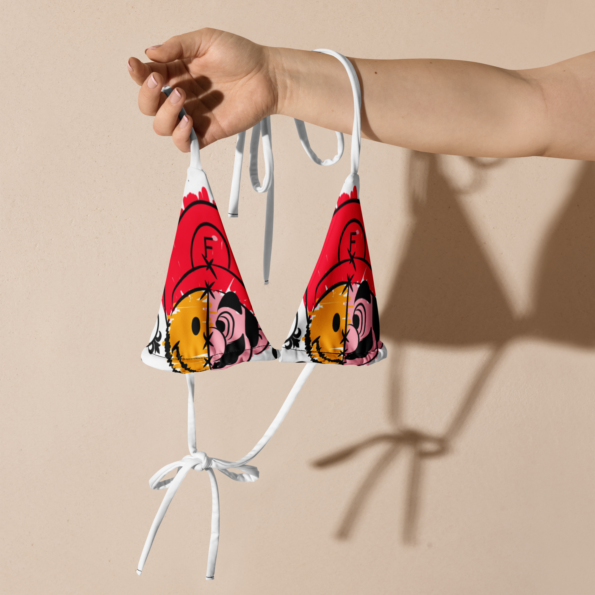 Disclaimer: To make your All-Over Print Recycled String Bikini Top last longer, thoroughly rinse it off after each use and get rid of any chlorine/salt residue.